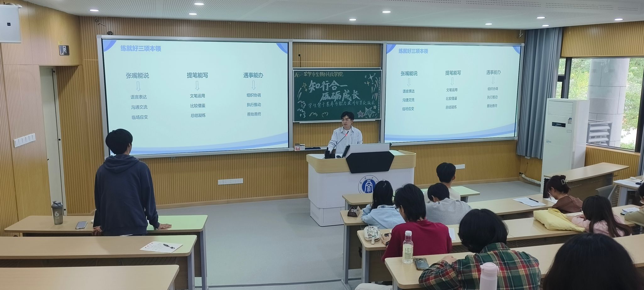 第十二期团校培训班“知行合一,砥砺成长”分享交流会于31教顺利举行。此次活动特别邀请到学院优秀学生骨干李济聪、张云昊同学担任主讲人,为学员们带来一场干货满满的经验分享盛宴。