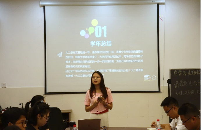 农村区域发展专业1班的楠园一舍535寝室在历次学院的安全卫生检查中获得“优秀”等级,并多次获得“流动红旗”荣誉称号,在5月学院举办的寝室风采大赛获得一等奖,本次主题班会特别安排优秀寝室代表进行分享发言。