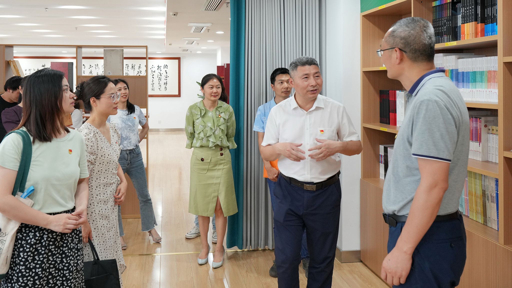 活动伊始,学院党委阳义健书记、张建奎副院长、支部书记张婷带领支部全体党员来到出版社新大楼。出版社与期刊社党委书记杨毅率出版社与期刊社党委第一支部全体党员热烈欢迎大家的到来,并参观了出版社四楼展厅、18楼演播室和20楼会议室,在此期间,杨毅书记向大家详细介绍了出版社的特色产品、数字出版的设施设备以及党建、工会的宣传栏,了解了出版社的建社历史、出版作品和业务范畴等。