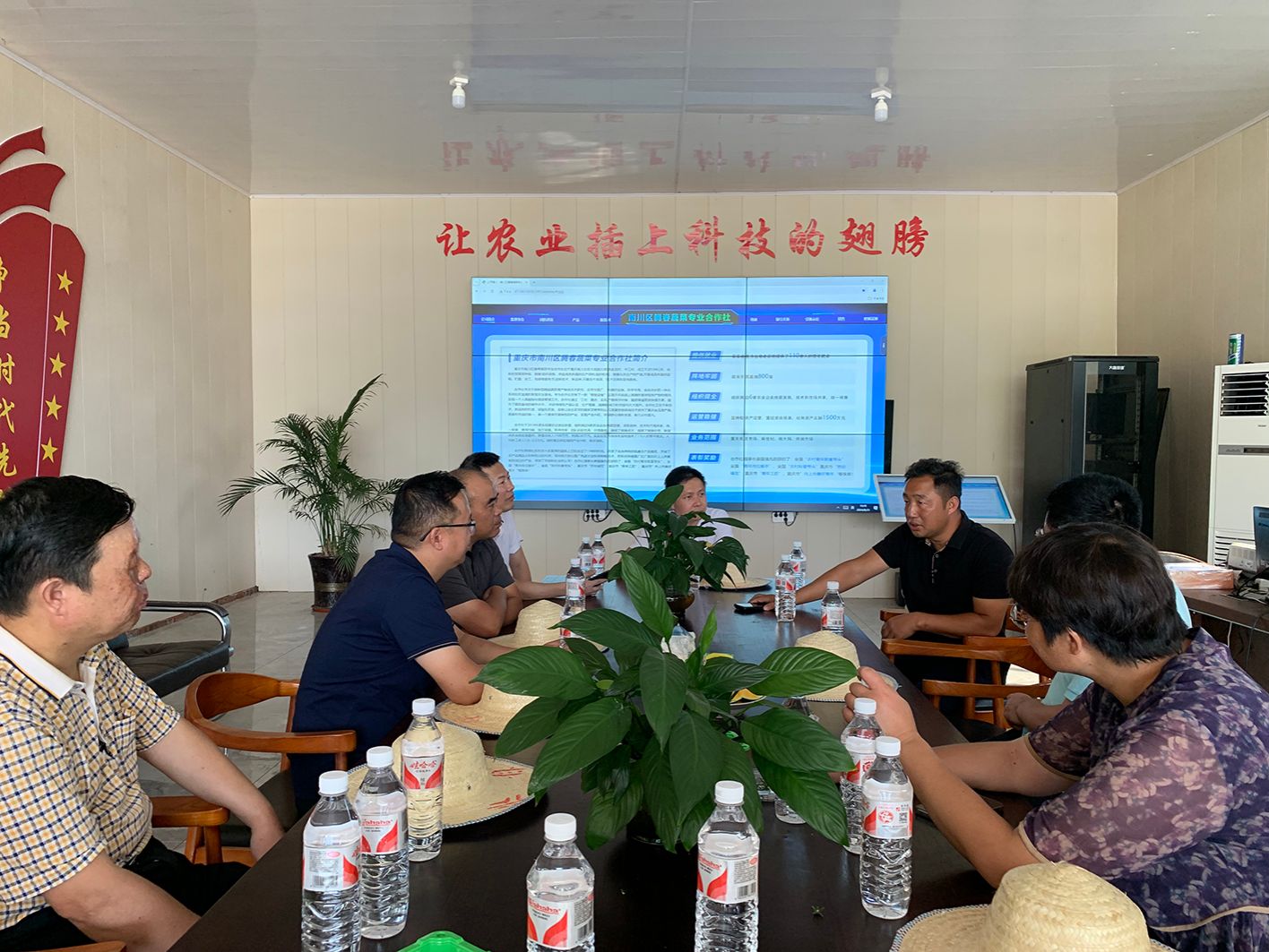 随后,同志们来到重庆市南川区腾春蔬菜专业合作社进行调研和交流,该基地在新奇特优品种选用、水肥一体化施用、病虫预报预防、智慧农业管理、高附加值市场经营、让利于农共同富裕等方面均做得很好,给大家的印象深刻。腾春蔬菜专业合作社成立于2010年,主营蔬菜尤其是丝瓜种植。全国劳动模范、腾春蔬菜专业合作社理事长姜国强指出,合作社专注于精品农业栽培技术的应用与推广,建立了自动化设施系统,达到了精细化、精准化、可控化和数字化。姜理事长说,目前基地内设有数据采集、数据设定和预警、自动化生产作业、病虫害收集和图像上传系统等智能系统,实时监测大棚里面的温度、湿度等参数,实现远程智能控制水肥一体化灌溉、诱导杀虫等操作。近两年,他引进了新品种“苹果丝瓜”。该品种的特点是果形似青苹果,椭球形,方便采摘、包装、运输和加工,产量和品质比普通丝瓜更好,口感嫩滑,肉厚清香,含有丰富的维生素和抗氧化成分,更耐贮存,且生长期短。此外,基地的一款综合性状和品质突出的进口高端樱桃番茄品种给大家的印象非常深刻,它诠释了当今国际遗传改良育种前沿的精益求精,也使大家更加体会到实现高水平科技自立自强的压力感和使命感。