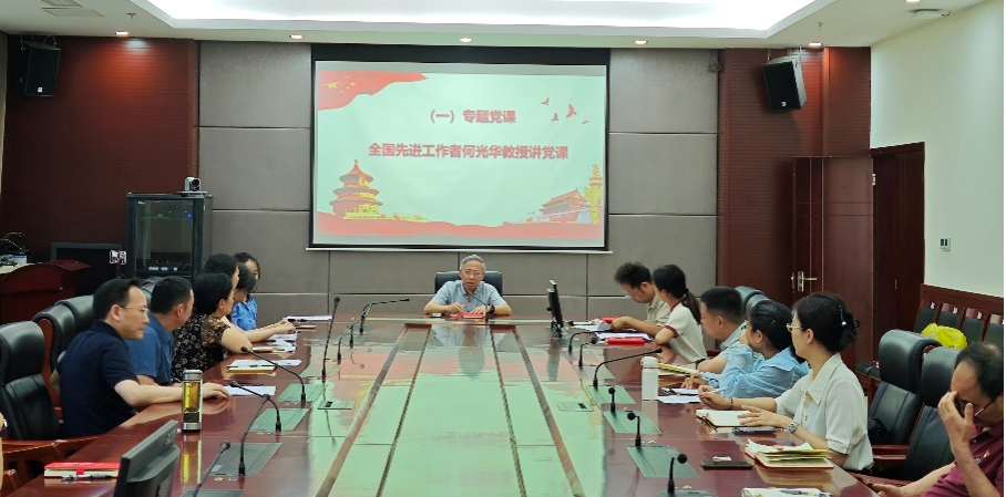 全国先进工作者何光华教授以“守初心,薪火相传;担使命,禾下逐梦”为主题为党员讲专题党课,他深入浅出地阐述了新时代教育工作者的使命担当,以自身经历生动诠释了"爱岗敬业、争创一流、艰苦奋斗、勇于创新、淡泊名利、甘于奉献"的劳模精神内涵。他指出高校教师的第一使命是人才培养,培养听党话、跟党走、为国奉献的人才,要以榜样育人、以成果育人、以实践育人为途径,实现让中国地种中国种,中国碗装中国粮,让每个人都吃好饭的国家使命担当。