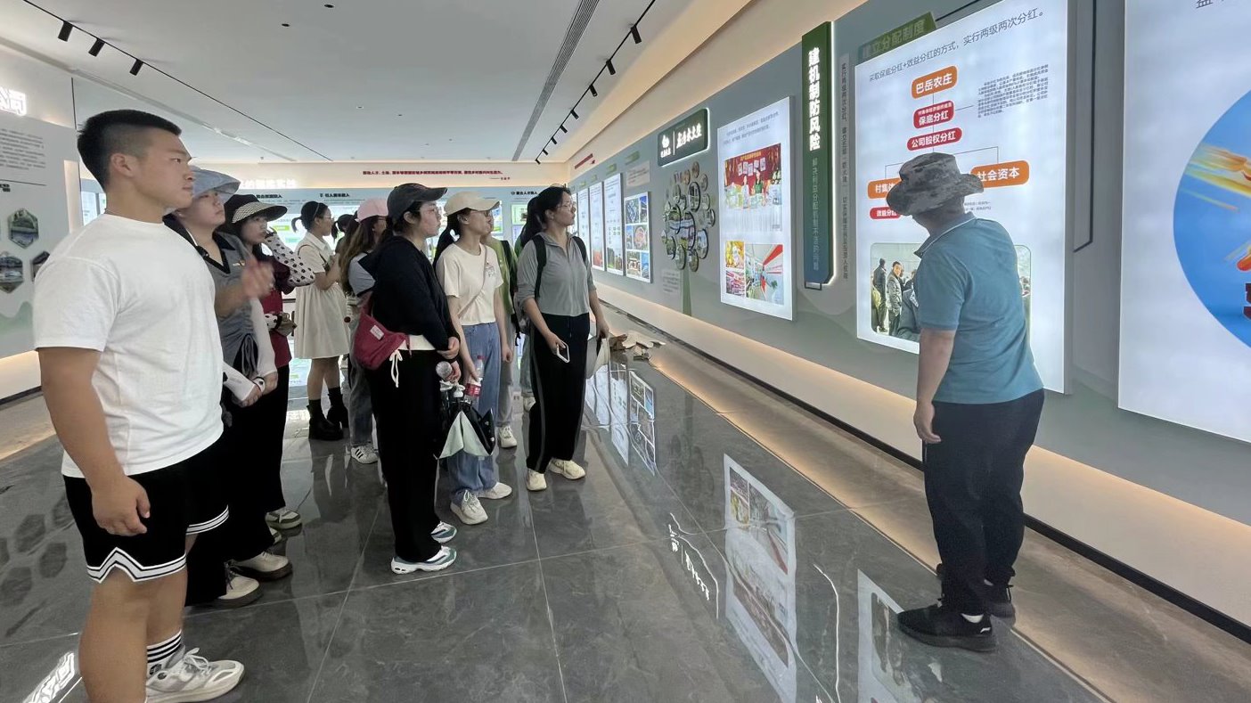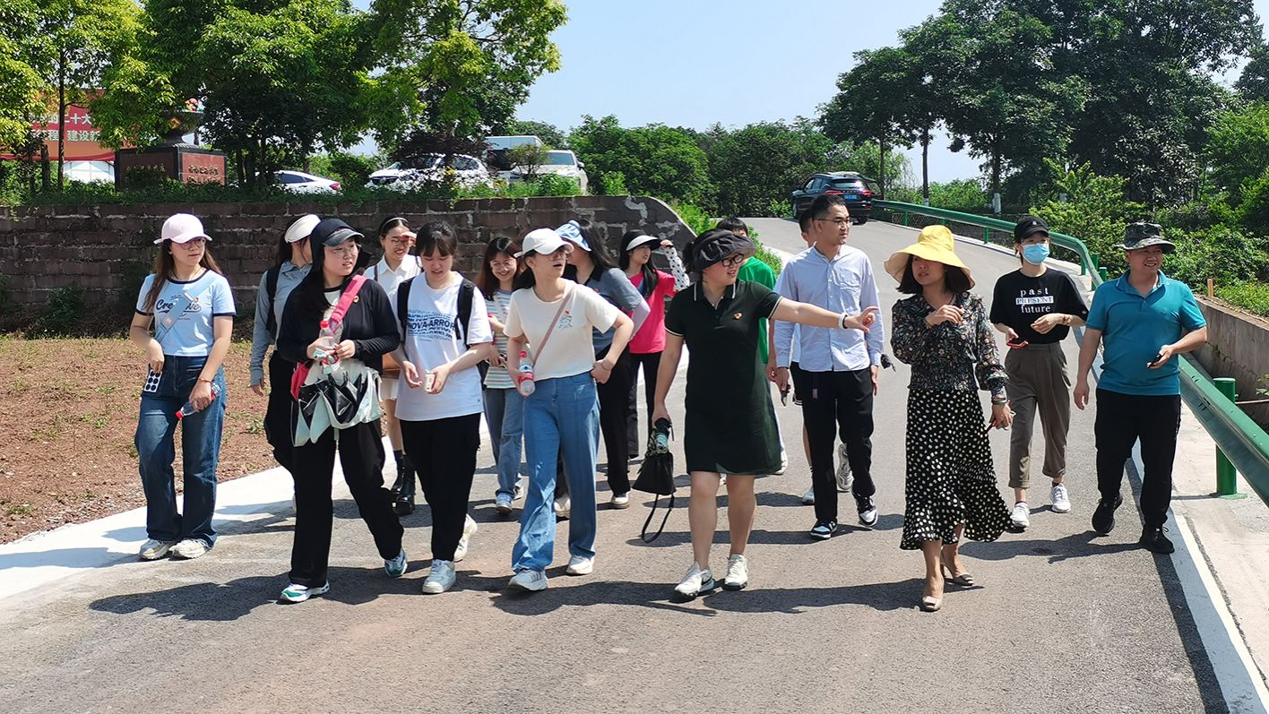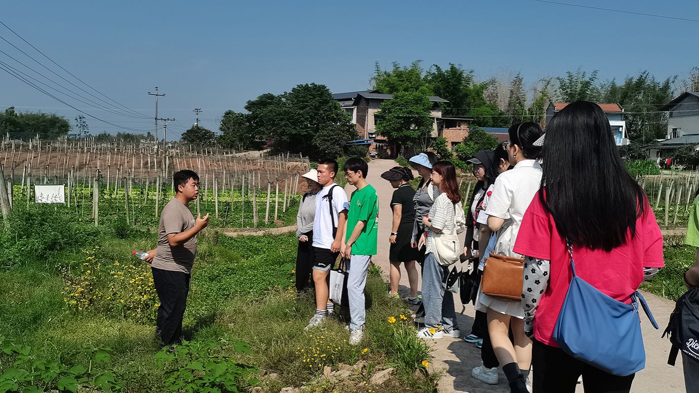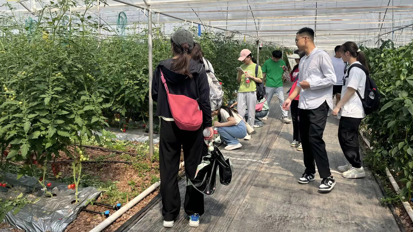 随后,在侣俸镇副镇长孙贤菊的带领下,同学们参观了铜梁侣俸镇乡村振兴特色项目巴岳农庄。在巴岳农庄设施蔬菜科技园的温室大棚里,同学们见识了个头大、品质优的螺丝椒、花青素含量极高的黑紫色辣椒、红色和黄色挂满枝头的番茄,品尝了甘甜的“银河系列”小番茄,了解了温室大棚通过转光膜、反光薄膜等增强光照效果的技术,让大棚在没有任何照明设施的情况下却比户外更亮,大大提高辣椒和番茄的生长速度。在项目展厅,侣俸镇产业中心负责人杨昌武为同学们详细讲解了巴岳农庄的实践模式,“巴岳农庄不是一个具象的农场、庄园概念,而是推动乡村发展产业的一种模式、一条路径。”同学们从生产要素激活、创新经营管理模式、社会化服务等一幅幅图片、一幕幕规划图中学习铜梁乡村振兴路径。相信在未来此地将是大量优秀新农人的聚集地。