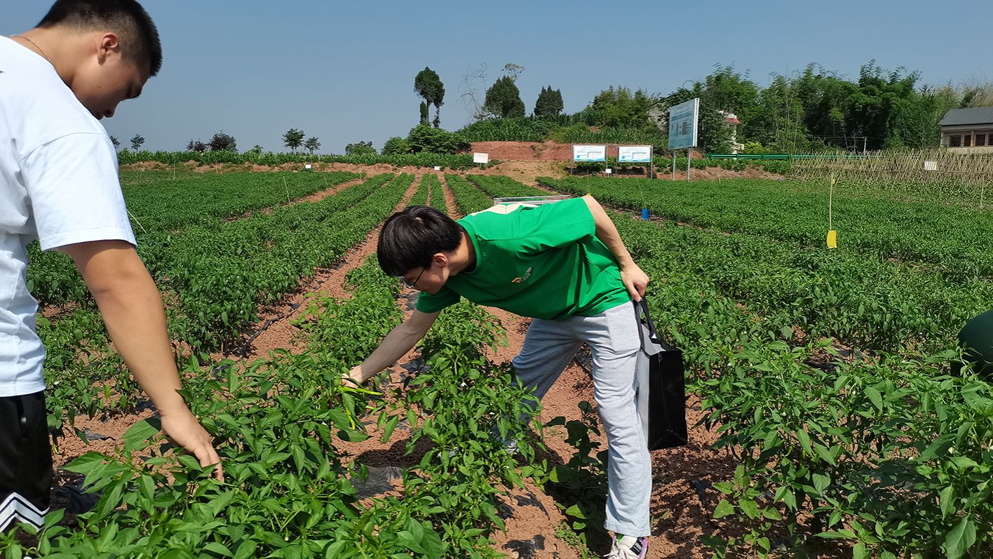 支部党员们到达后首先参观了科技小院办公场所以及田间示范基地,通过小院驻院研究生尚将同学的详细讲解和介绍,大家深入了解了铜梁蔬菜科技小院项目发展背景、与共建企业的合作内容、基地科研进展、产业创新模式等。在参观种植基地时,同学们还了解学习了科技小院研制的新型缓释肥和改进堆肥技术,并受邀采摘了新鲜辣椒,品尝了有机黄瓜。