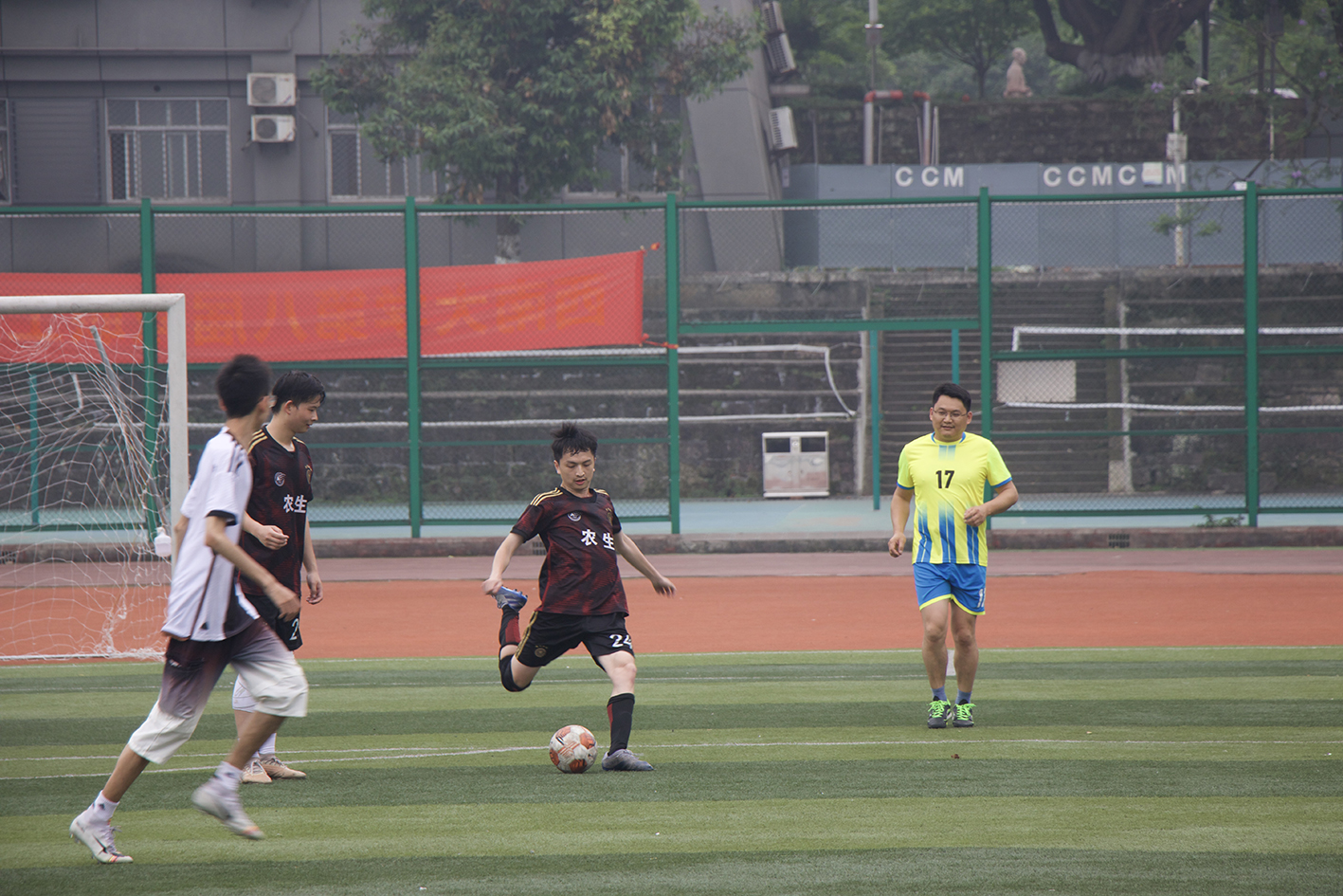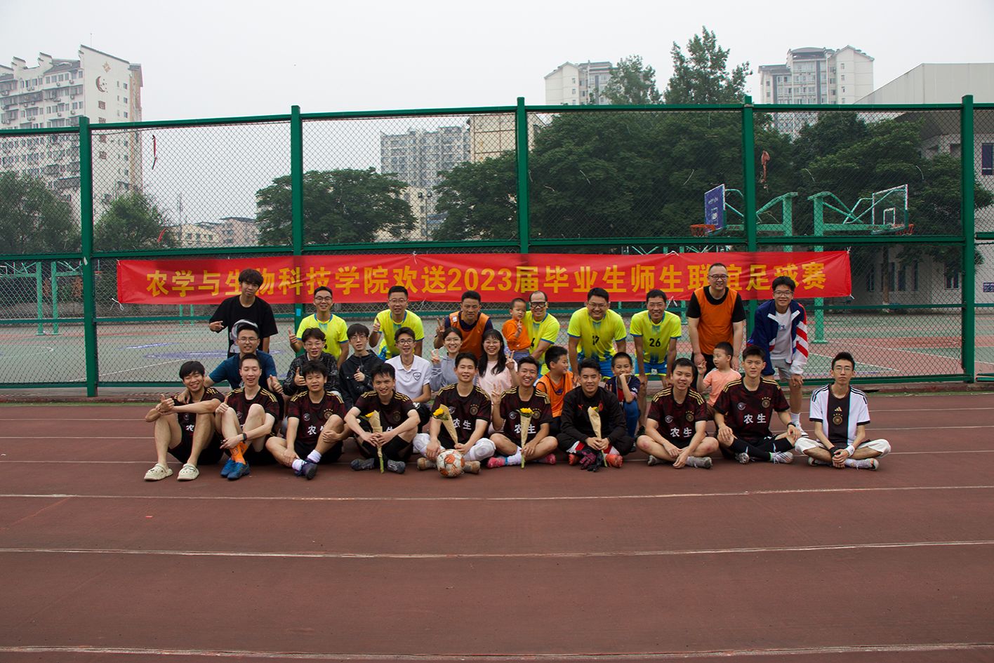 于5月28日在第四运动场举行了了一场师生足球友谊赛,由学院教职工男子足球队对阵学院学生男子足球队。球场上,平日在教学科研岗位兢兢业业、辛勤耕耘的老师们与青春洋溢、激情满满的学生们一起切磋足球技艺,挥洒汗水,共享运动的快乐。
