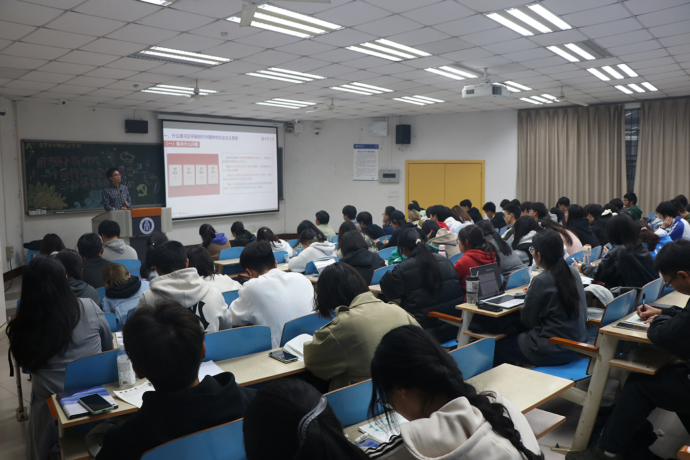崔老师旁征博引,将历史进程、个人经历、青年特点巧妙贯穿于讲授过程中,与台下同学积极互动,引导大家认识习近平新时代中国特色社会主义思想在为青年提供精神指引、明确前进方向、助力本领增强上的指导作用,做一名有志气、有骨气、有底气的新时代好青年,将专业学习与国家发展深度融合,担负起中华民族伟大复兴的历史使命。