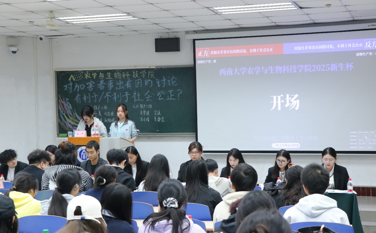 经过初赛与半决赛的激烈角逐,植物生产类1班与植物生产类2班成功晋级决赛。双方围绕“对加害者事出有因的讨论,有利于/不利于社会公正”这一辩题,展开了一场思想与逻辑的精彩交锋。