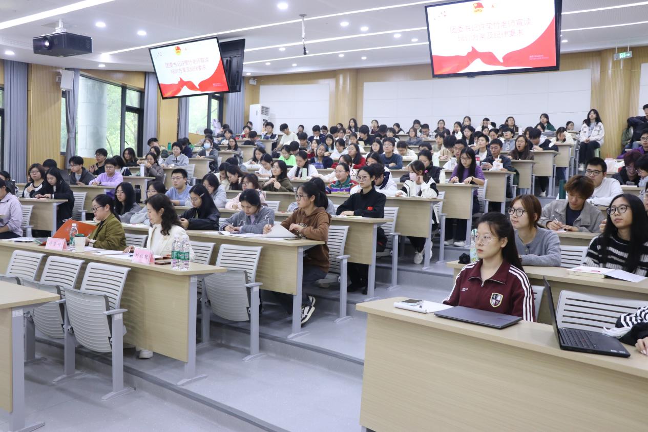为引导广大团员和青年学习贯彻党的二十届四中全会精神,深刻领会习近平总书记关于青年工作的重要思想,落实团中央关于加强团员教育管理的要求,提升团员青年的政治素养、理论水平和实践能力,增强团组织的凝聚力和战斗力,培养一批理想信念坚定、能力素质过硬的青年骨干,学院团委举办“青马工程”培训班暨第十三期团校,并于2025年11月14日在31教209教室举行开班典礼。学院党委副书记刘秋艳、学院团委书记许莹竹出席开班典礼,来自学院团委及学生会等学生组织、各团支部的40余名院级“青马工程”学员与147名团校学员共同参加。开班典礼由学院团委组织部负责人李婧琪同学主持。
