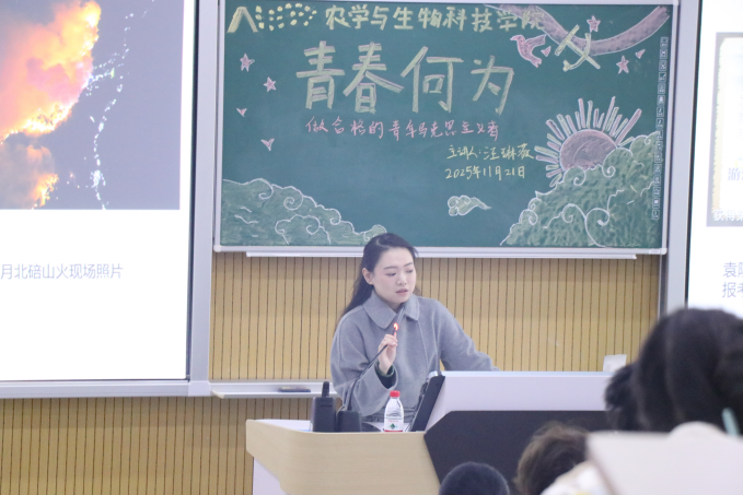 讲座伊始,汪琳薇老师以“何为青春”这一时代之问破题,通过革命烈士陈乔年坚守信仰、原子弹研制科学家群体矢志攻坚、北碚山火中志愿者们团结担当等鲜活案例,生动勾勒出青春最动人的模样。她指出,马克思主义是青年成长成才的强大思想武器,唯有以科学理论为指引,青春征程才能攻坚克难、行稳致远。
