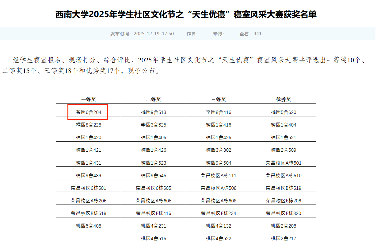 2025年学生社区文化节之“天生优寝”寝室风采大赛结果近日揭晓,御姐av