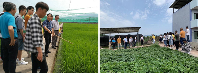 随后,在学院院长兼水稻研究所所长何光华教授的讲解与引领下,众人参观了各种不同类型的水稻新资源,包括适用于乡村旅游“拼图”的五彩水稻、温变色变型的“斑马叶”新资源、耐盐碱水稻等。何院长具体介绍了不同类型水稻资源生长发育的机理,深入浅出地解答了参观师生关注的各种问题。在薯作研究基地,张凯副教授系统介绍了薯类作物研究进展,并邀请国际、国内农业院校同行们莅临实验室参观指导。
