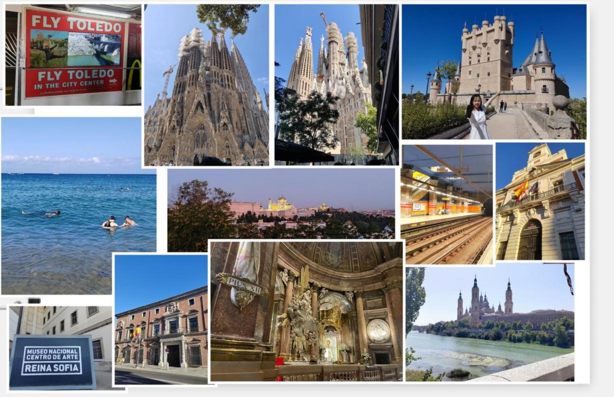 第三站之后的,是课程结束后的空余时间,大家组织了许多有趣的活动。我们或是三两结伴,欣赏城市独特一角;或是跟随当地华人导游,穿梭在马德里的大街小巷。与此同时,我们还在索菲亚博物馆内畅游观赏,在西班牙王宫下尽情歌唱,在当地小酒馆切身感受Mojito的魔力,在圣家堂教堂感受高迪创造的世界遗产,在太阳门广场尽情沐浴阳光,在巴塞罗那蔚蓝的大海里寻宝,在奎尔公园游山逗鸟,在托莱多古城寻找历史残页,最后,在王宫观景台用日落结束我们的探索。