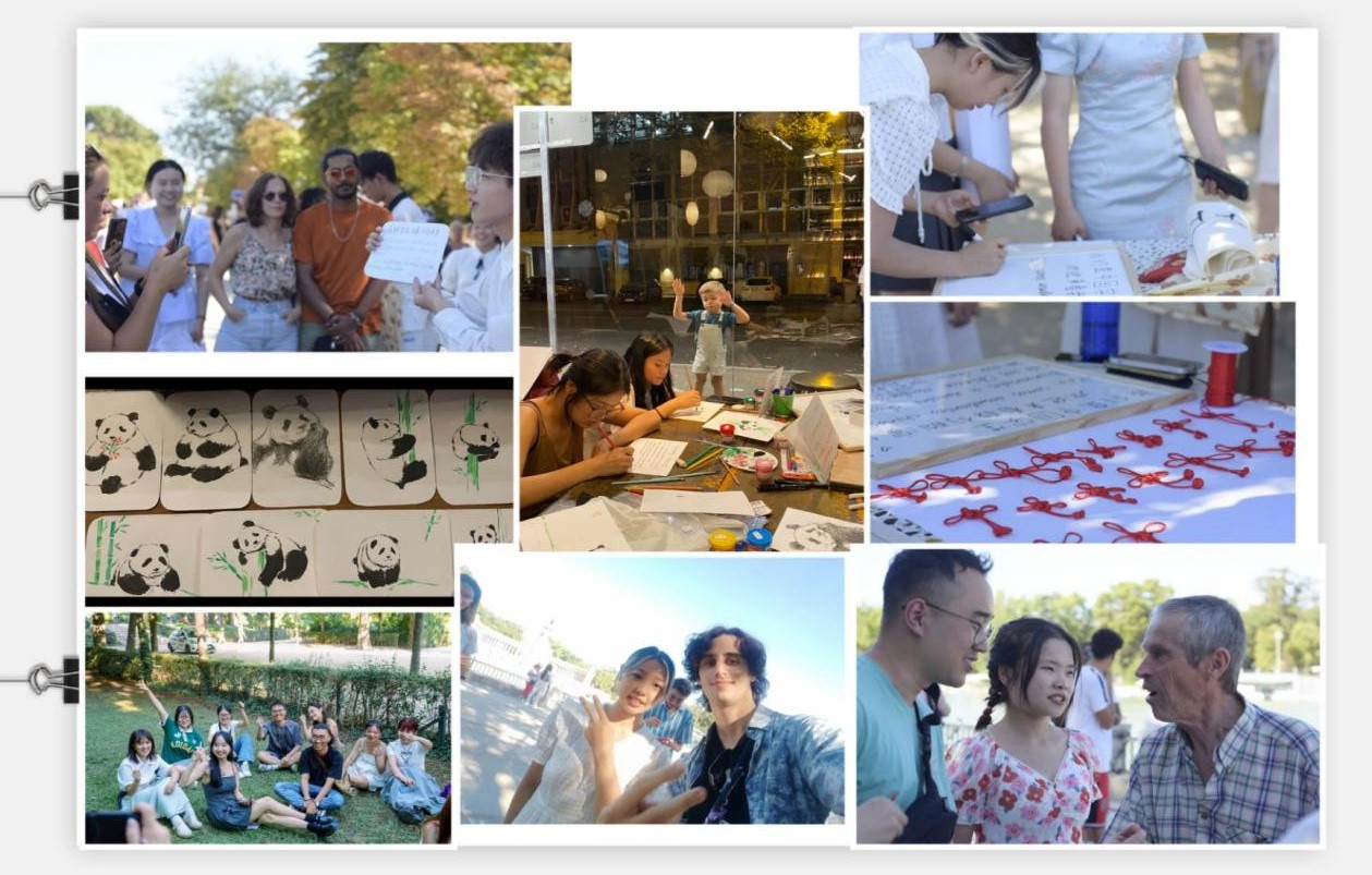 第二站,我们在Retiro公园举行了成员破冰活动,在自我介绍和游戏环节之后,来自不同学院和专业的同学们,也更加熟悉和亲切。而在不久后,同样在Retiro公园,此次项目成员相互团结协助,同学们各尽其能,一同举办了中西建交50周年文化交流活动,一同与外国友人感受中国结、熊猫、古典舞以及中国传统歌艺文化。
