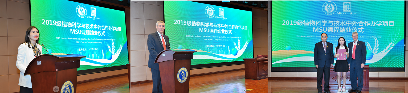 6月1日下午2点半,2019级植物科学与技术专业MSU课程结业仪式隆平楼404报告厅举行,MSU副校长布莱德·博登豪森、MSU山林校区校长兼环境植物学与自然资源系主任黄晋丰、MSU中国项目办公室主任刘丹丹、MSU环境植物学与自然资源系教师代表陈丽玲、御姐av